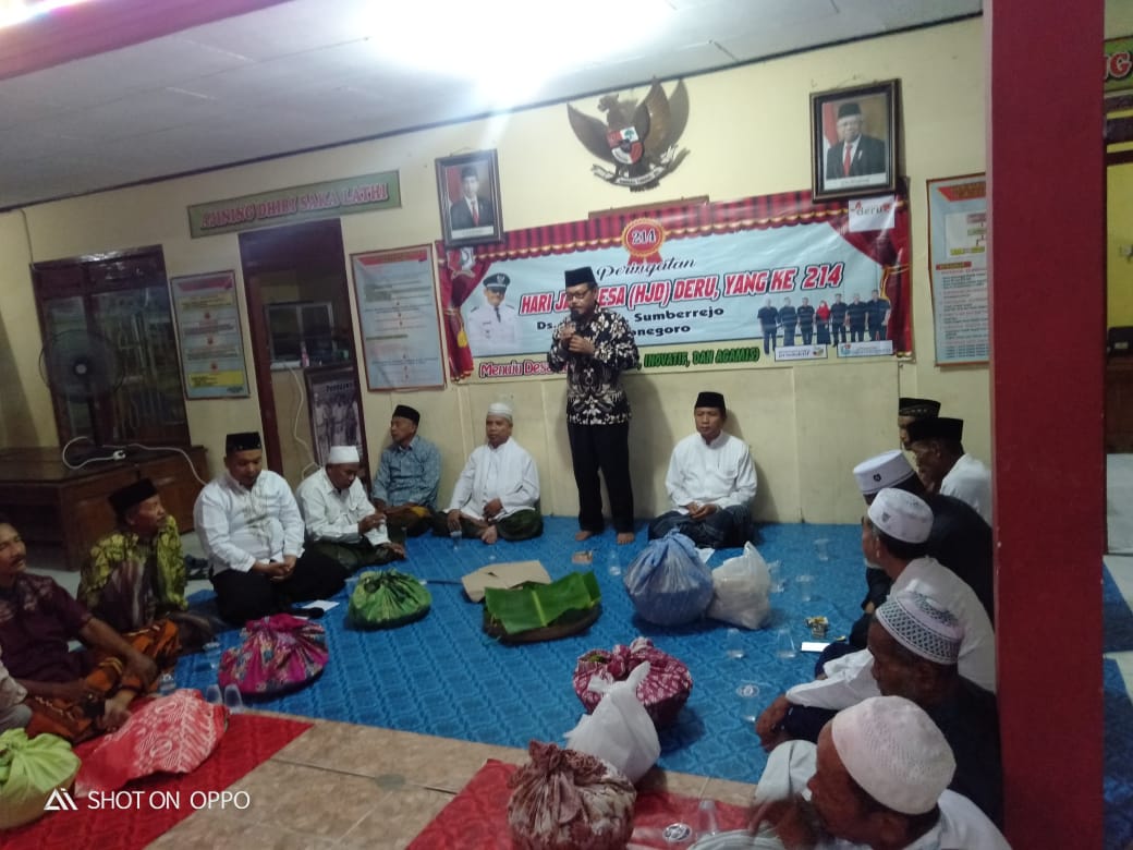 “Hari Jadi Desa (HJD) ke 214 mari kita kirimkan do’a untuk para leluhur yang telah mendahului kita semua dari Mbah kades pertama sampai Almarhum Pak Latif.”ujarnya.