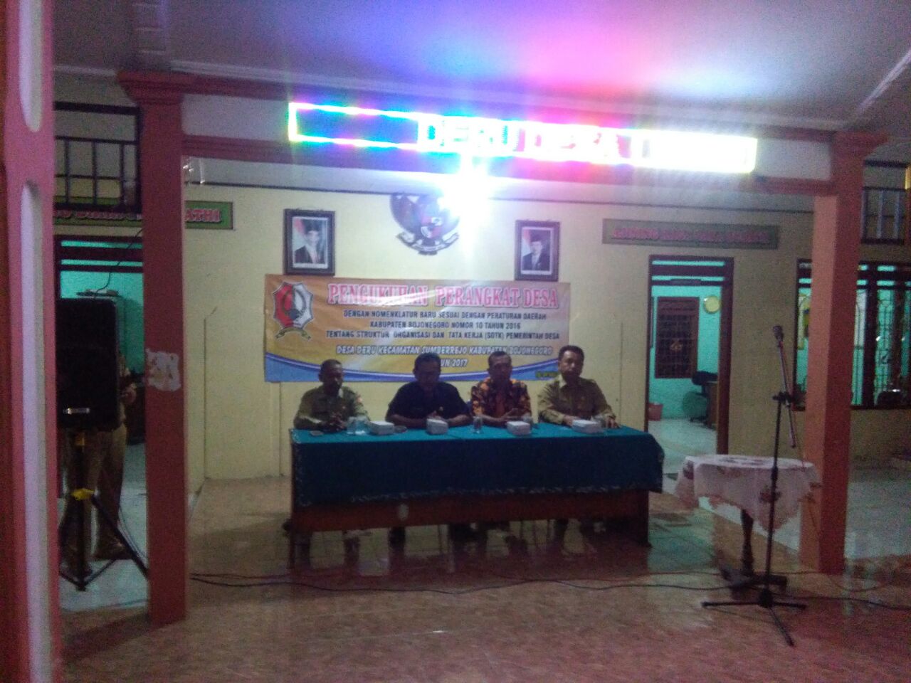 kimderumaju.com Guna menuju Desa Swasembada Desa Deru Kecamatan Sumberrejo, Bojonegoro mengukuhkan enam Perangkat Desa di Balai desa Deru Senin (24/7/2017) malam ini.